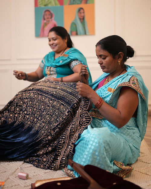 A reverence for Indian craftsmanship underpins every stitch and seam of label Sureena Chowdhri. A creative curiosity about age-old techniques of embroidery, weaving and textile motivates us to engage local artisans and empower them to preserve the vibrant cultural heritage of the country.
