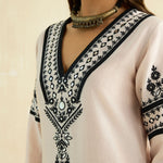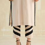 This straight-cut kurta set pulls double duty as versatile separates. Crafted in a Nude Beige base, it’s detailed with gota patti, resham, and mirror work along the hemlines and cuffs. Wear it as a set or pair the pieces individually with staples already in your wardrobe.