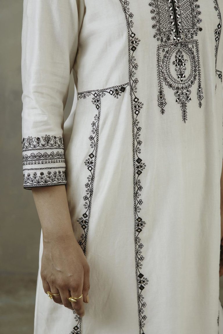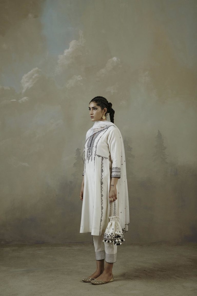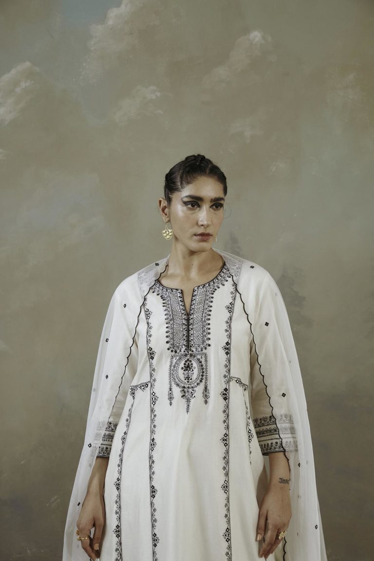 Ivory Kalidaar Embroidered Kurta Set