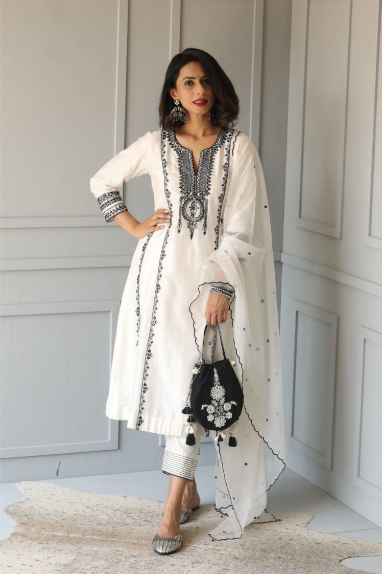 Ivory Kalidaar Embroidered Kurta Set