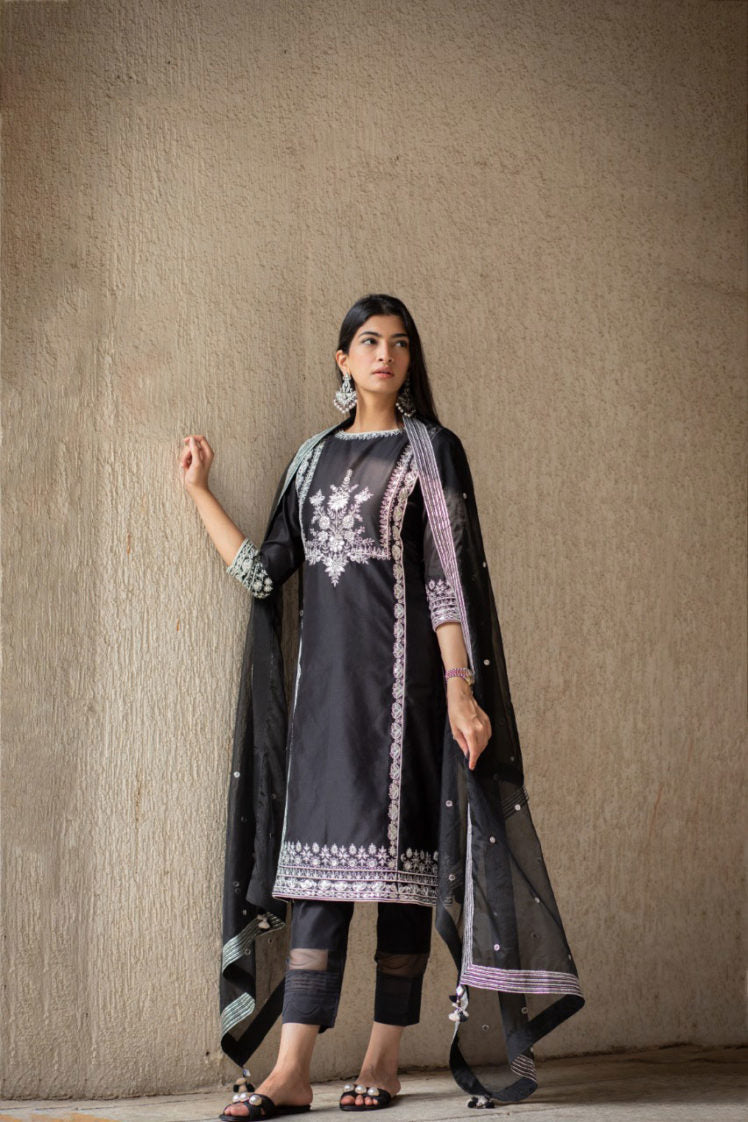 Midnight Black Gota Jaal Kurta Set