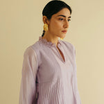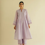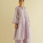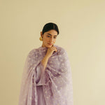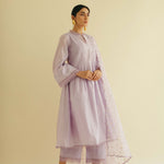 Purveyors of a ‘less is more’ aesthetic will be drawn to this dreamy lilac kurta set. The flared sleeves add just the right amount of drama, and the lace detailing elevates this simple look. Paired here with our signature embroidered organza dupatta, this one’s a must have.