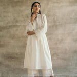 Purveyors of a ‘less is more’ aesthetic will be drawn to this dreamy lilac kurta set. The flared sleeves add just the right amount of drama, and the lace detailing elevates this simple look. Paired here with our signature embroidered organza dupatta, this one’s a must have.