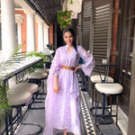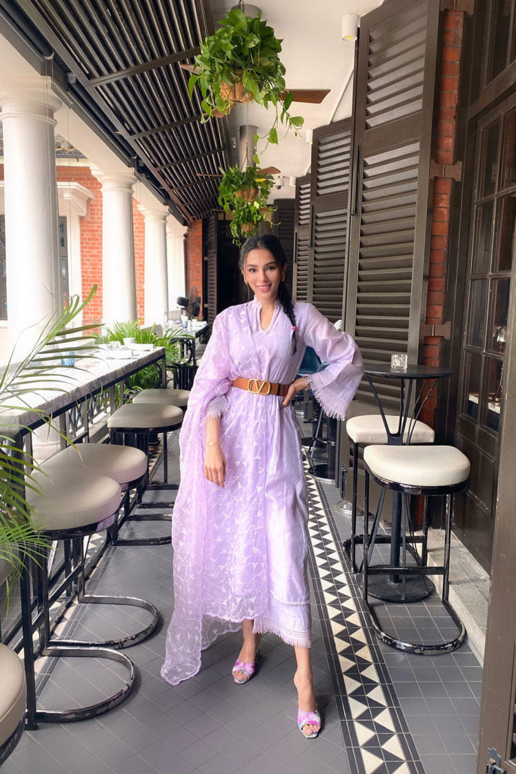 Purveyors of a ‘less is more’ aesthetic will be drawn to this dreamy lilac kurta set. The flared sleeves add just the right amount of drama, and the lace detailing elevates this simple look. Paired here with our signature embroidered organza dupatta, this one’s a must have.