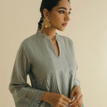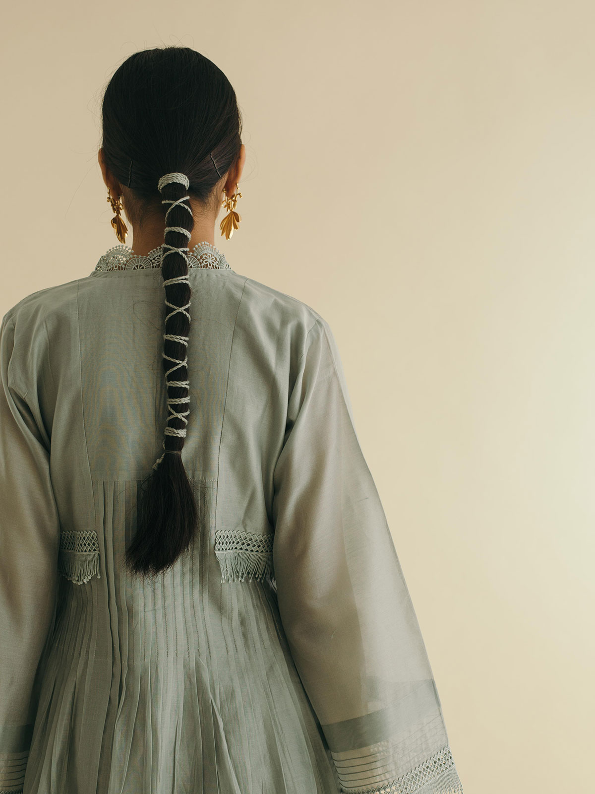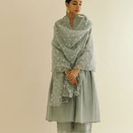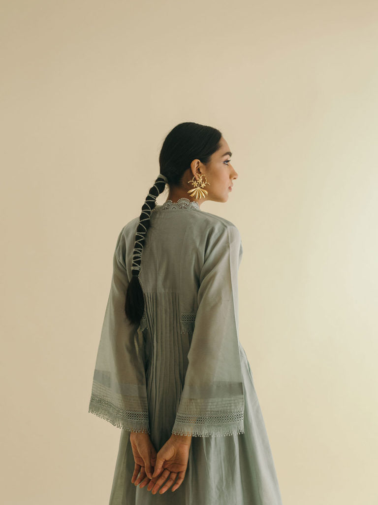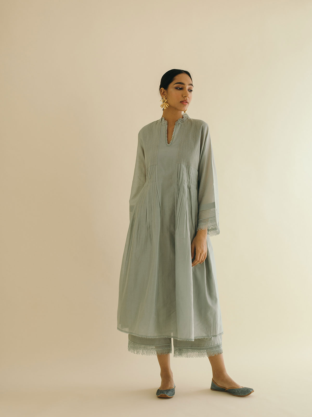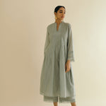Purveyors of a ‘less is more’ aesthetic will be drawn to this dreamy sea-green kurta set. The flared sleeves add just the right amount of drama, and the lace detailing elevates this simple look. Paired here with our signature embroidered organza dupatta, this one’s a must have.