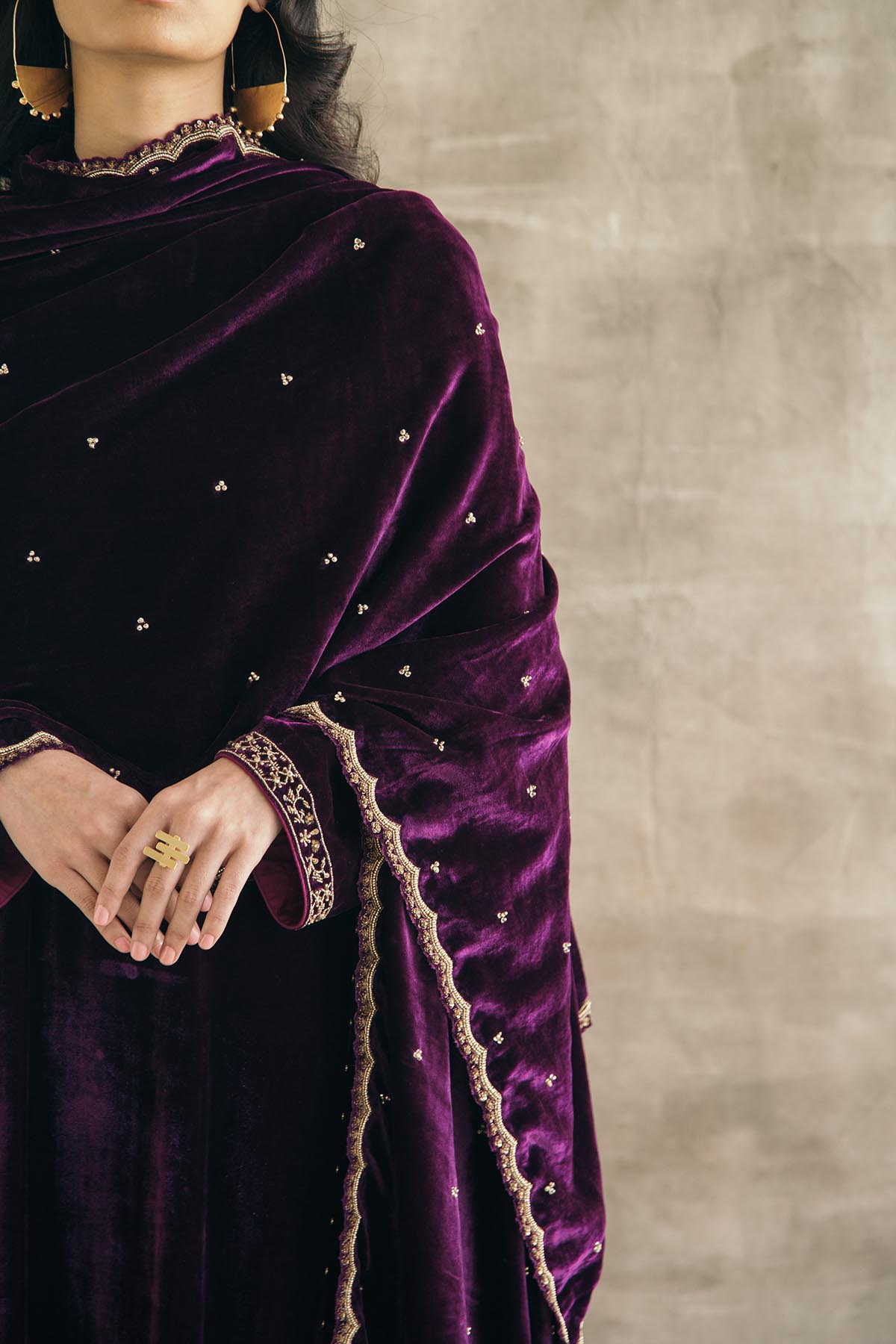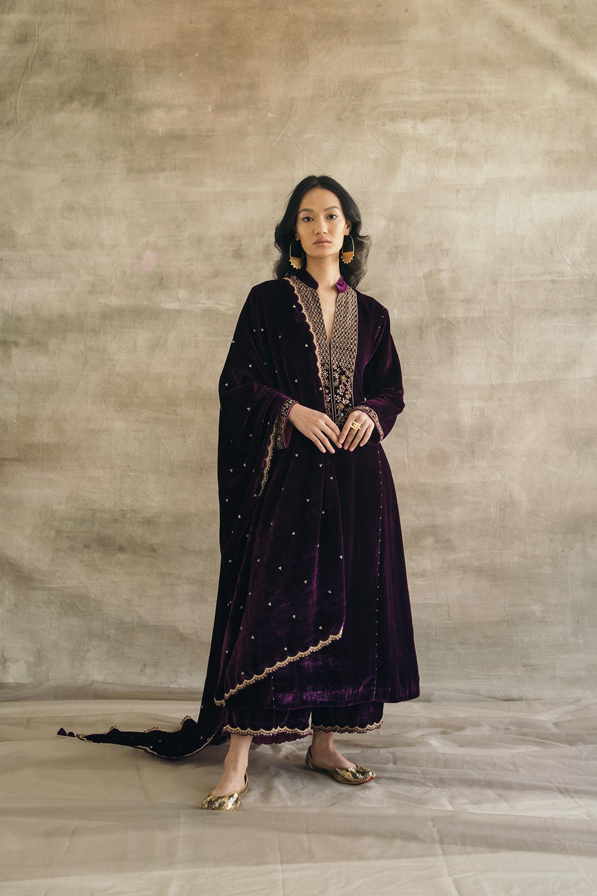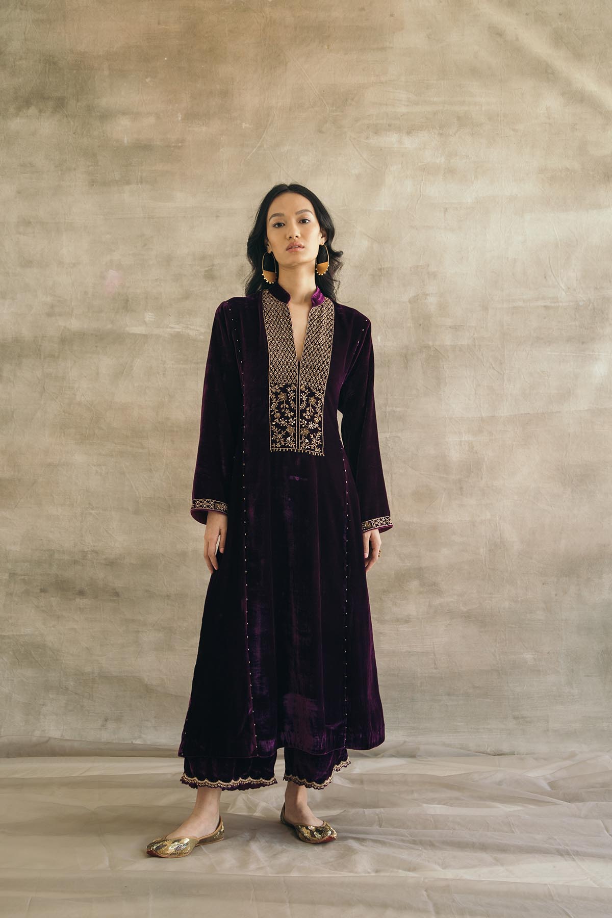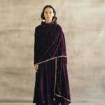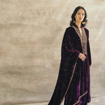 Plum Kalidaar Velvet Kurta Set-Heavy-RTS