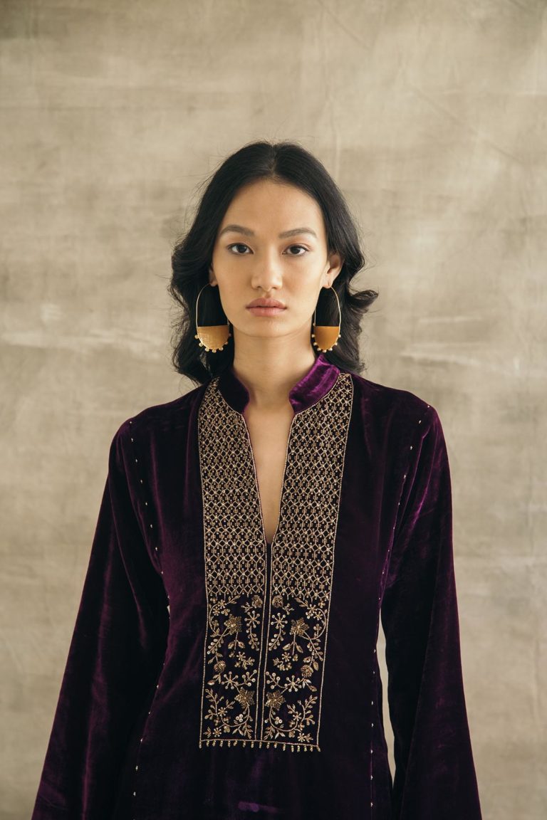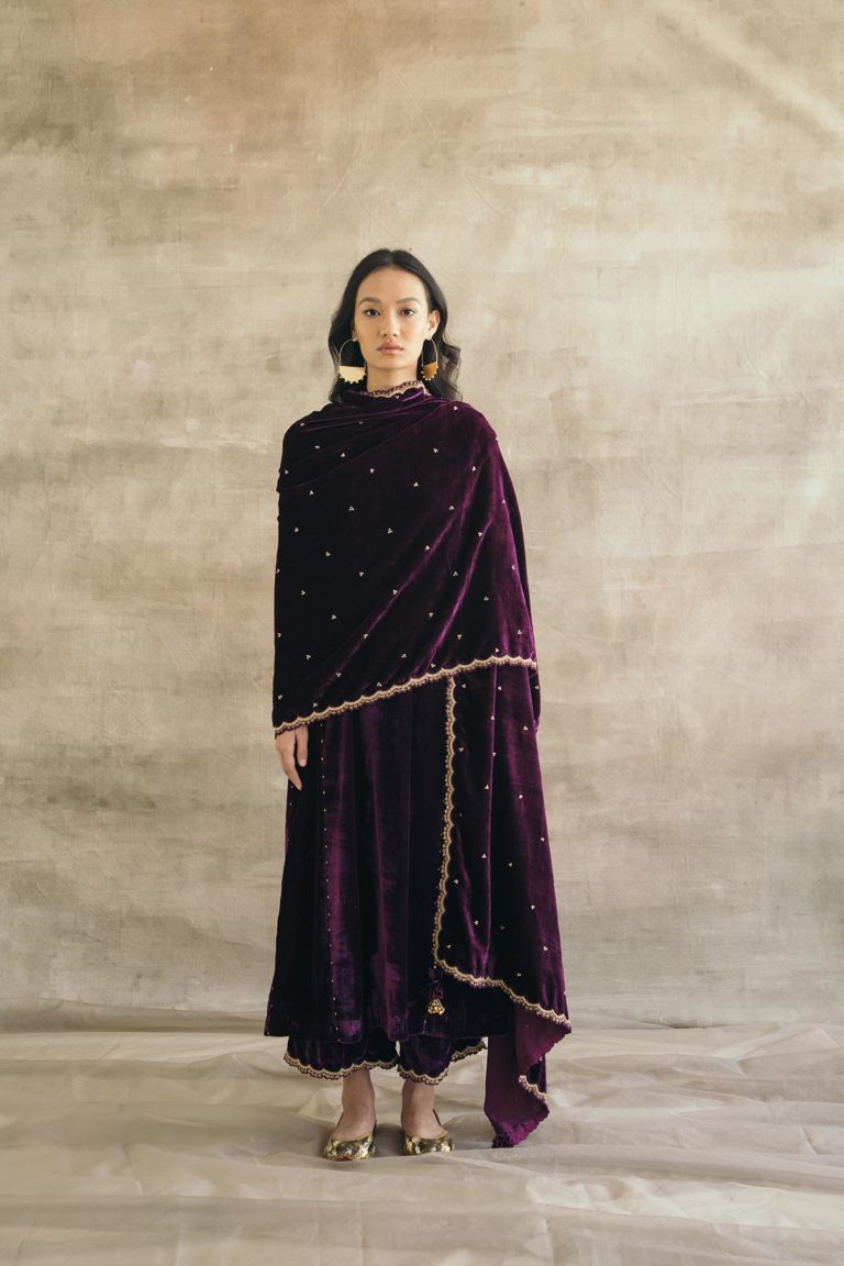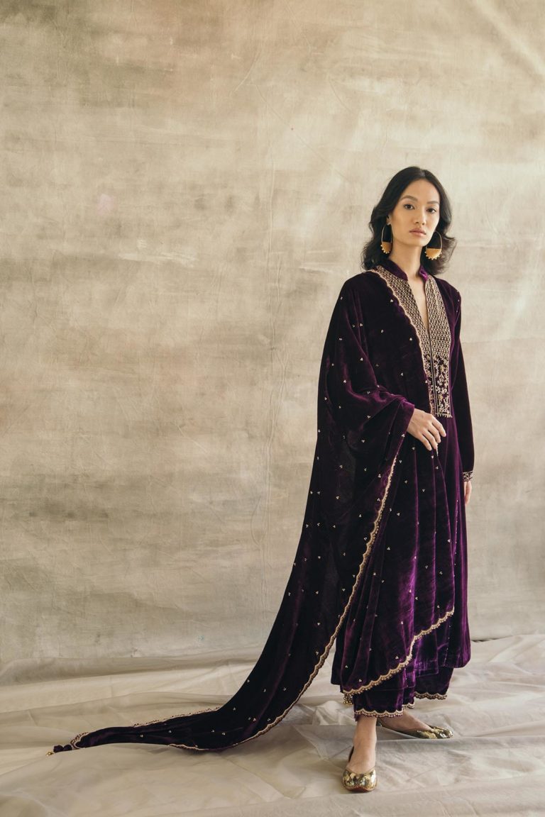 Plum Kalidaar Velvet Kurta Set-Heavy-RTS