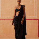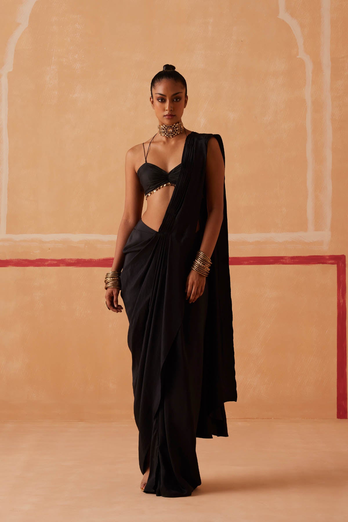 Our Shakti Drape Sari puts a modern twist on a classic Indian silhouette. Made in luxurious silk, this sari features a high slit, creating a mesmerizing look. Paired with a matching blouse with minimal sequin tassels, this ensemble is perfect for any occasion!