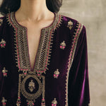 Velvet Mughal Motif Kurta Set
