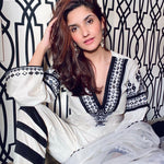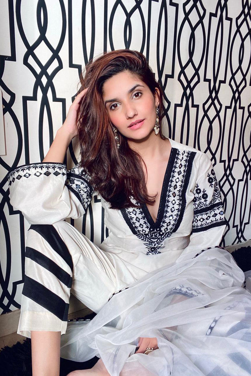 This straight cut kurta set goes the extra mile as separates. On a clear enamel base, ebony gota patti, resham, and mirror work line hemlines and cuffs, perfect to sit as a set, or to be matched separately with existing colours in your closet.