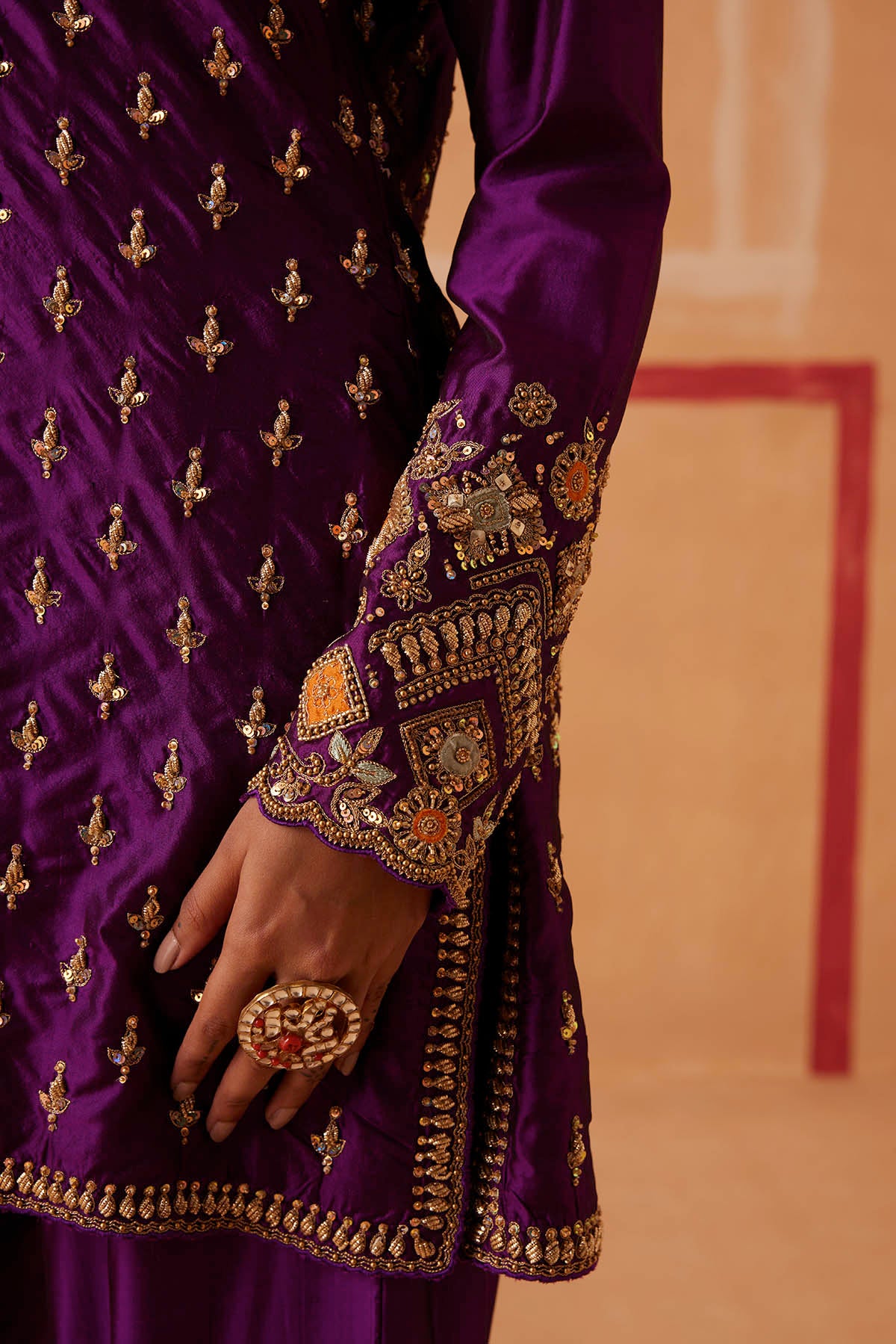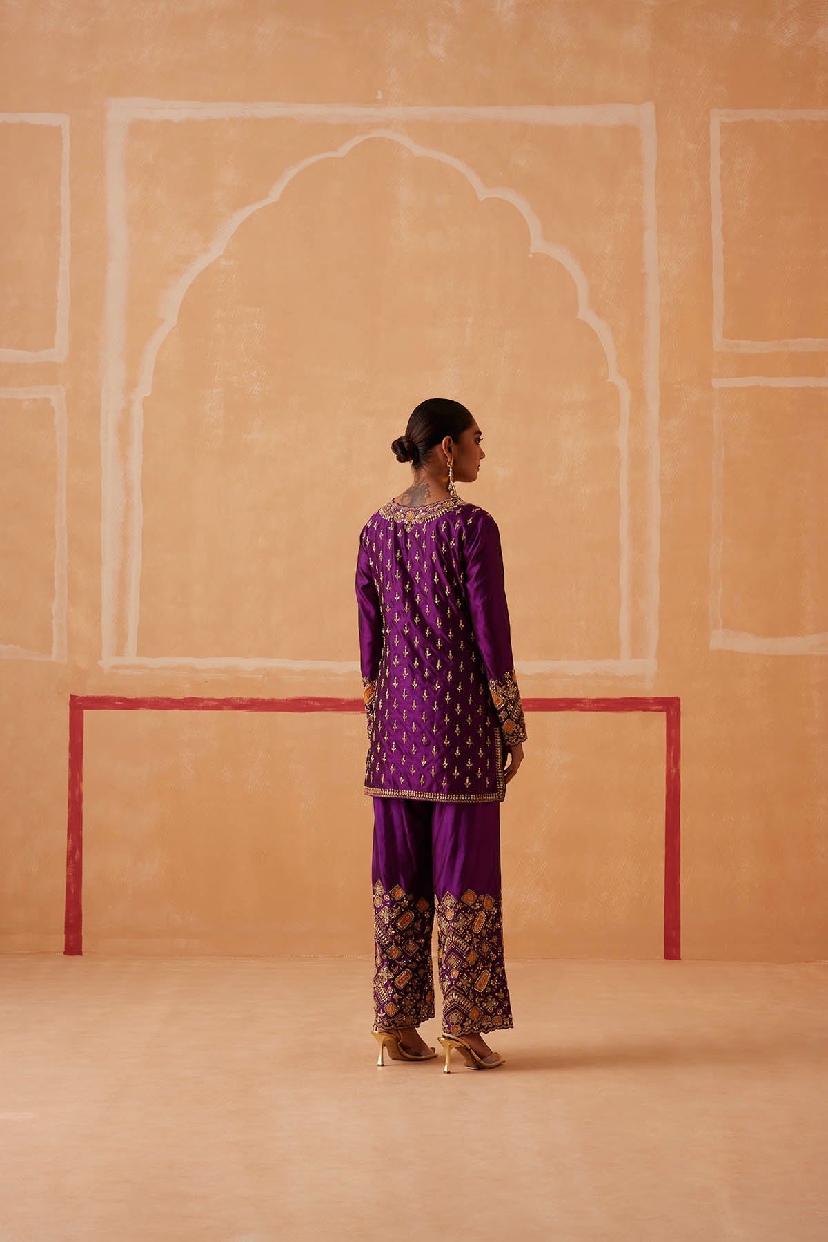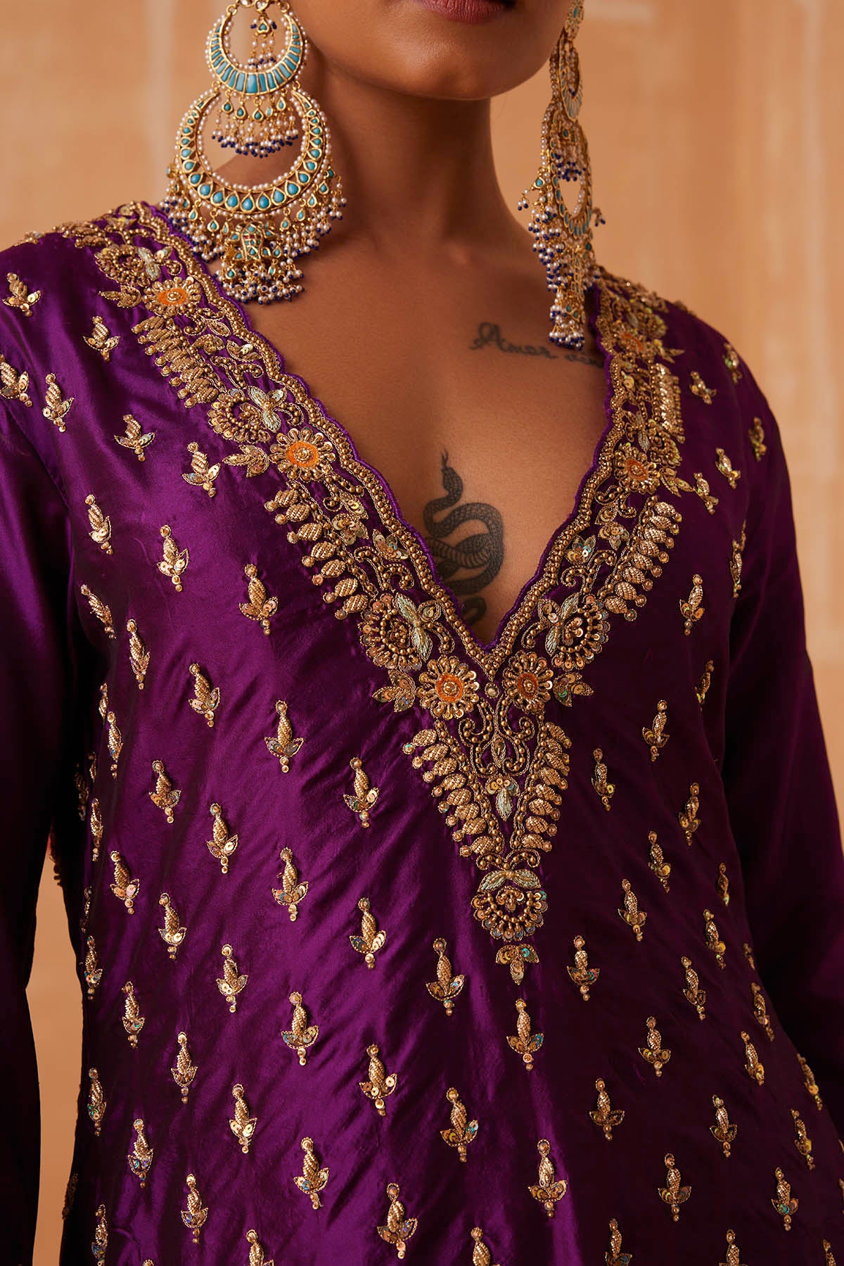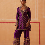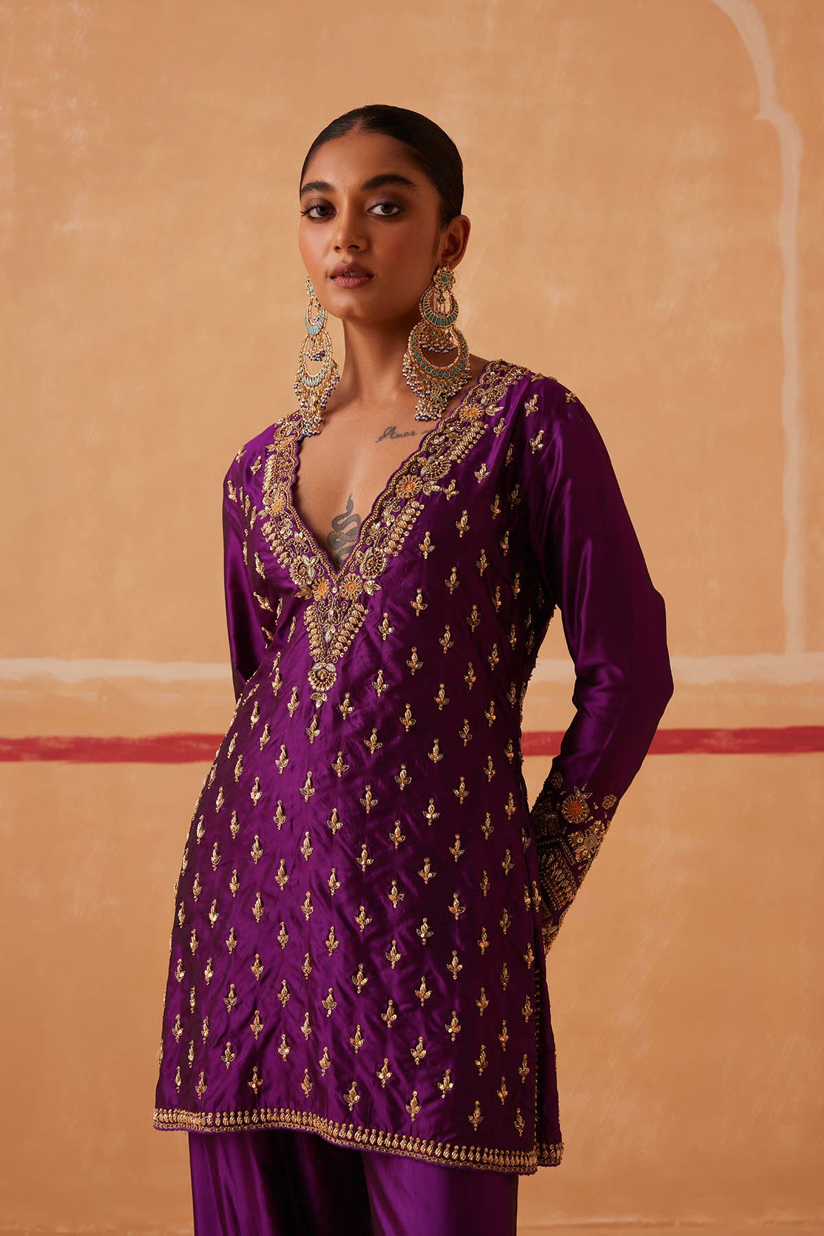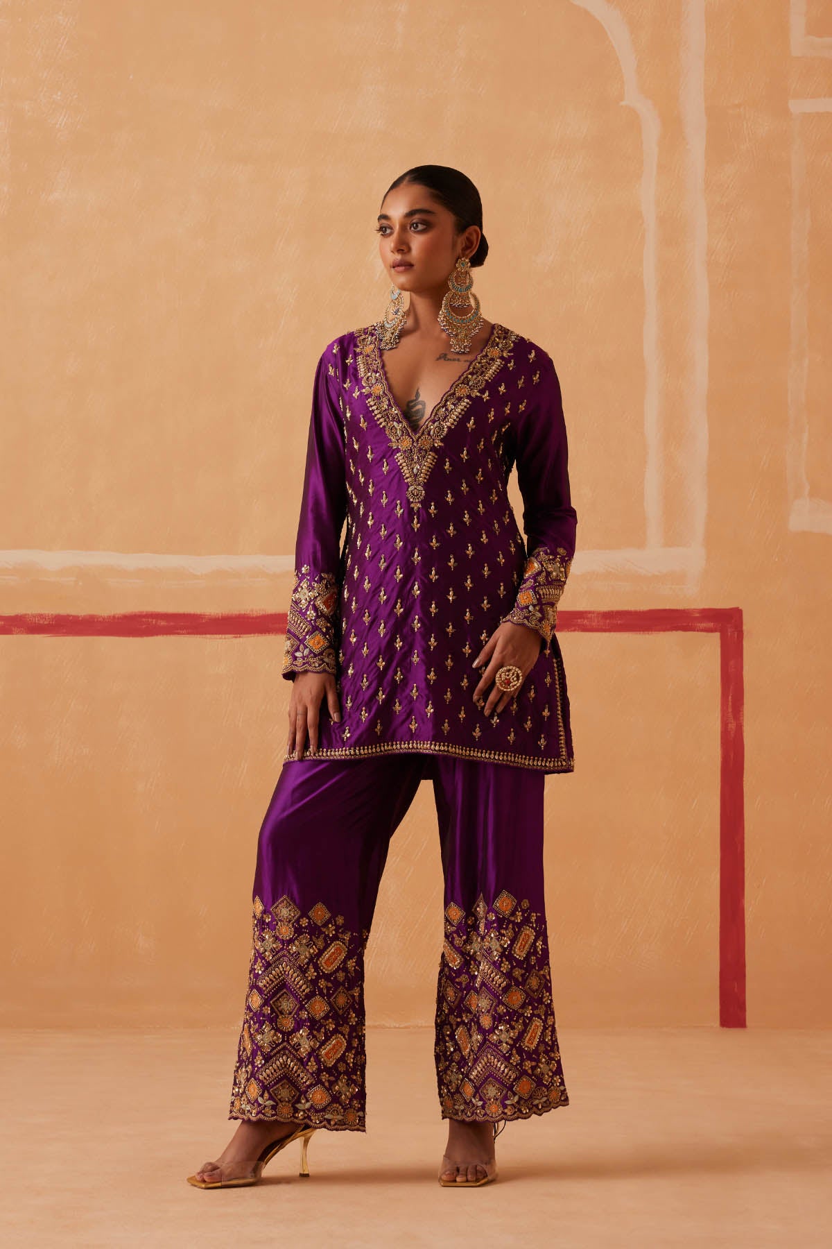 A powerful silhouette that will have you beaming with confidence: The Tarabai kurta features zardozi antique hand embroidered motifs while the pants come with floral appliqué patches that sing with tradition. This one’s a must have!