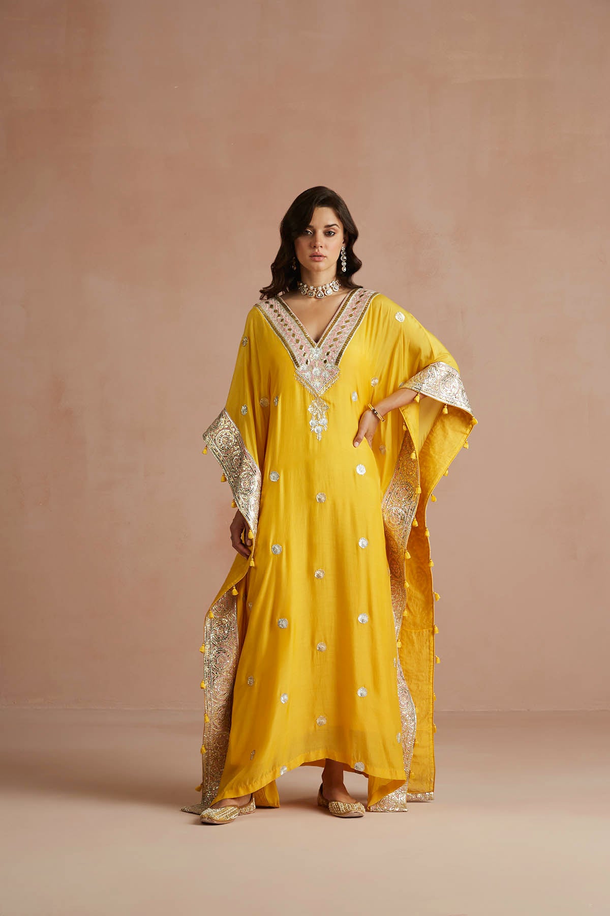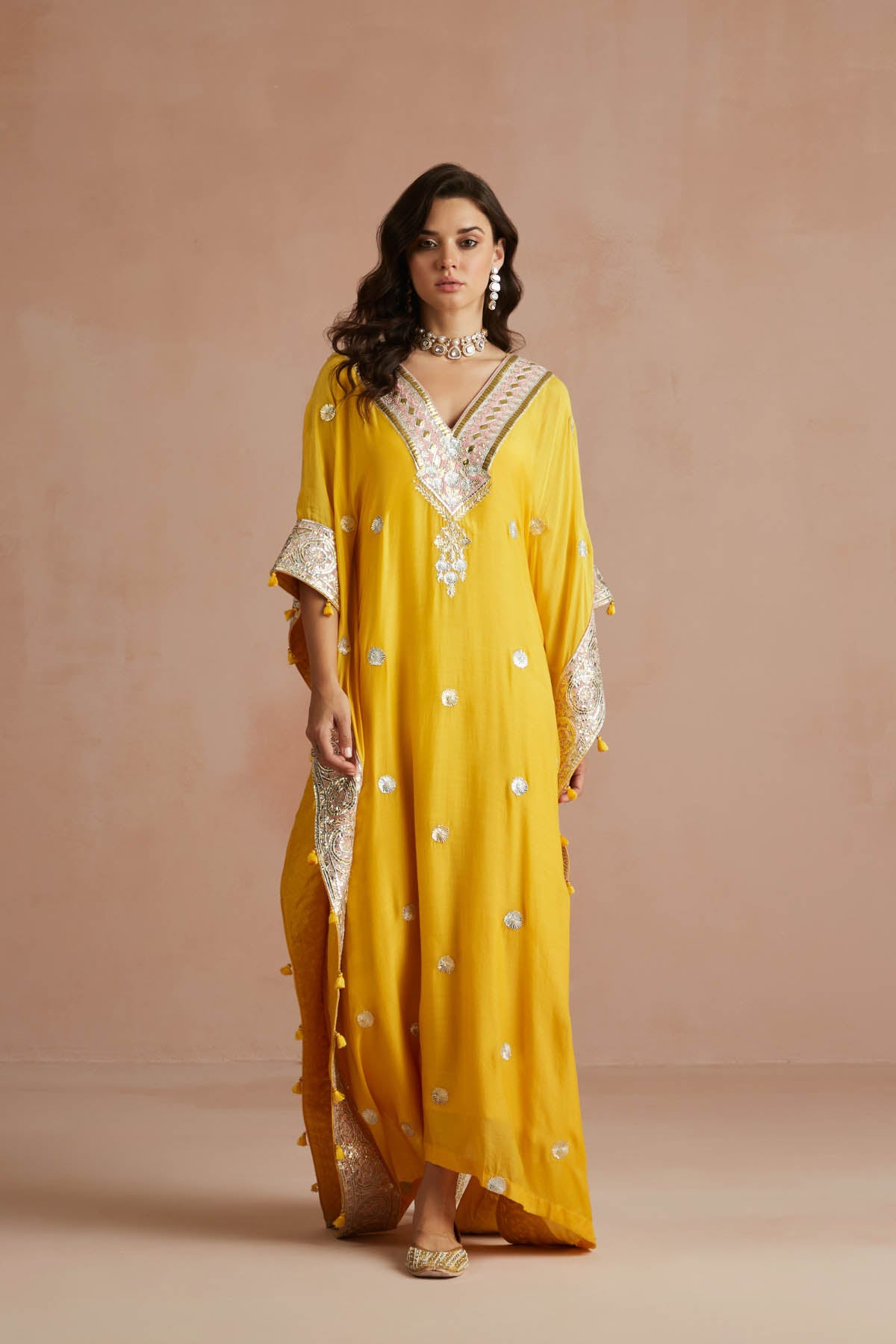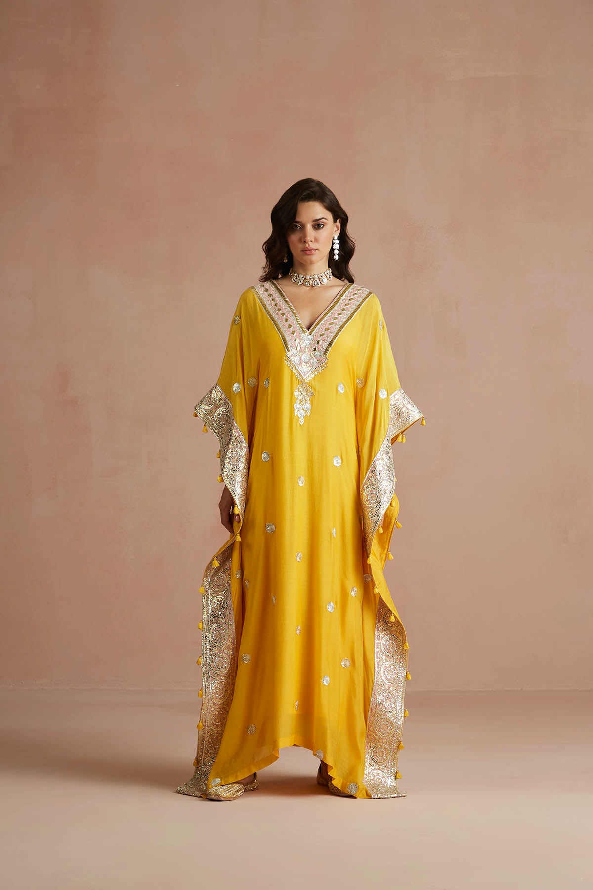 Yellow Gota Embroidered Kaftan